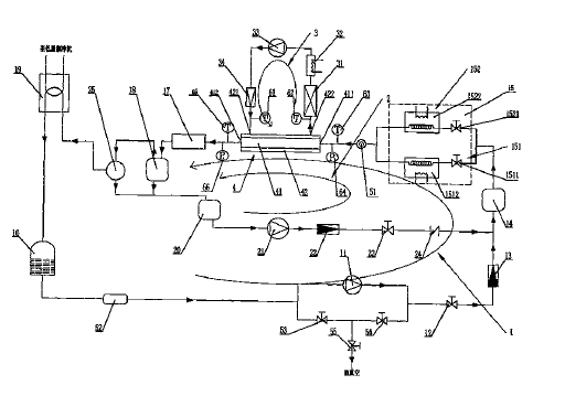 本發(fā)明涉及一種管內(nèi)制冷劑含油蒸發(fā)/冷凝傳熱測試一體裝置及其測試方法,裝置的特征是包括通過管道順序連接的冷凝器、回收罐、動力泵、調(diào)節(jié)閥、制冷劑質(zhì)量流量計、均勻調(diào)和槽、蒸發(fā)預(yù)熱/冷凝預(yù)熱并聯(lián)選擇通路、蒸發(fā)/冷凝測試段、加熱器、高效油分離器、冷凝器的制冷劑回路;通過管道順序連接的高效油分離器、貯油器、高壓油泵、潤滑油質(zhì)量流量計、控制閥、均勻調(diào)和槽、蒸發(fā)預(yù)熱/冷凝預(yù)熱并聯(lián)選擇通路、制冷劑蒸發(fā)/冷凝測試段、加熱器、高效油分離器的潤滑油注油回路;以及通過管道順序連接的換熱器、水加熱器、水泵、水質(zhì)量流量計的蒸發(fā)/冷凝測試段換熱回路??蛇M(jìn)行不同制冷劑管內(nèi)蒸發(fā)冷凝傳熱測試和制冷劑含油率對換熱管蒸發(fā)冷凝傳熱特性影響測試,方便、可靠。 |