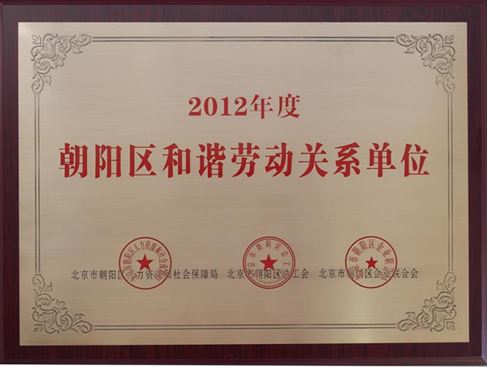 集佳被評選為“2012年度朝陽區和諧勞動關系單位”