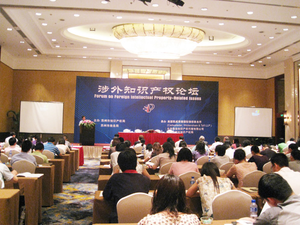 由蘇州市知識產(chǎn)權(quán)局、蘇州市商務(wù)局主辦,北京集佳知識產(chǎn)權(quán)代理有限公司、美國凱威萊德國際律師事務(wù)所、蘇州高新區(qū)知識產(chǎn)權(quán)局共同承辦的“涉外知識產(chǎn)權(quán)論壇”于6月30日在蘇州香格里拉大酒店隆重舉行。蘇州市知識產(chǎn)權(quán)局副局長施衛(wèi)兵和蘇州市商務(wù)局副局長王志明出席論壇并致辭。