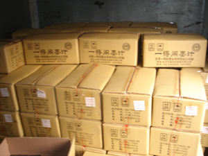 接到委托后,集佳立即組織調查維權部專案律師,前往案發地區,再一次核實了侵權事實,并準備了完整的證據材料,向山東省臨沂市工商行政管理局投訴。該局分析案情后,決定與山東省臨沂市公安局,開展一場聯合執法行動。次日,由多名工商局和公安局組成的聯合執法大隊,在投訴人的帶領下,徑直前往侵權企業,經過一番仔細搜查,發現 “一得閣”墨汁115箱,標識近600個,包裝盒近400個,商品說明書100份,經過一得閣公司技術負責人現場鑒定,以上查扣物品均為假冒侵權貨品。鑒于此,工商執法人員,立即對以上侵權貨品予以查扣。據代理律師透露,該案的涉案較高,工商行政管理部門在對侵權人依法做出行政處罰的同時,依職權可將案件移交公安機關以追究侵權人的刑事責任。目前,該案在進一步的審查處理過程中。(以下為現場拍攝下來的侵權產品)