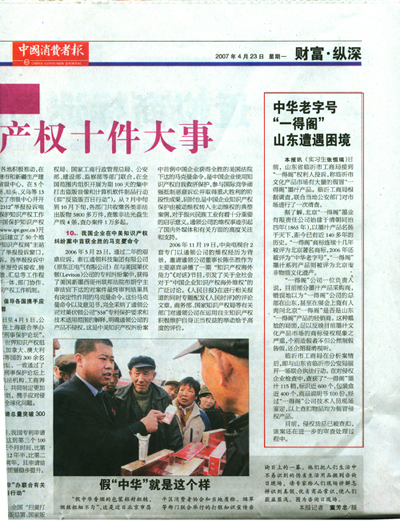 但是,就是這樣一個濃縮了中華文化產品上百年歷史,代表著書畫用品最高榮譽的中華老字號,卻在近些年日漸遇到維護自有知識產權領域的難題,特別是受到嚴重的假冒侵權產品的困擾。一時間,假冒產品充斥市場,魚目混雜。據一得閣公司介紹,“目前部分墨汁產品采購商,錯誤地以為一得閣公司得總部在山東,甚至在展會上竟有人詢問北京一得閣是否是山東一得閣產品的經銷商。”如此尷尬的局面,足以反映目前墨汁文化產品市場的商標侵權現象之嚴重,個別造假者不但公然制假售假,還企圖混淆視聽,完全是一種對法律的漠視行為。