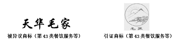 事實理由和法律依據:被異議商標與引證商標構成類似服務上的近似商標;被異議商標構成對毛家飯店公司馳名商標惡意摹仿;被異議商標損害了毛家飯店公司在先商號權。該案件在商標局階段予以核準注冊,商評委階段維持商標局階段予以核準注冊,一審階段維持了商評委裁定予以核準注冊,二審階段撤銷了商評委裁定,判定商評委重新作出異議復審裁定。