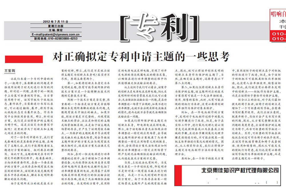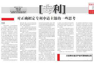 《中國知識(shí)產(chǎn)權(quán)報(bào)》:對(duì)正確擬定專利申請主題的一些思考