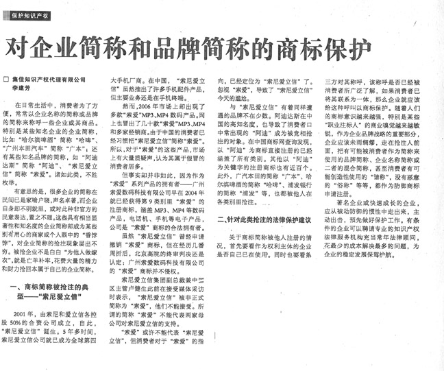 《國際商報(bào)》:對企業(yè)簡稱和品牌簡稱的商標(biāo)保護(hù)