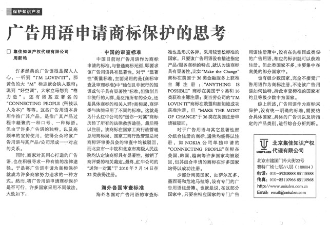 《國(guó)際商報(bào)》:廣告用語申請(qǐng)商標(biāo)保護(hù)的思考