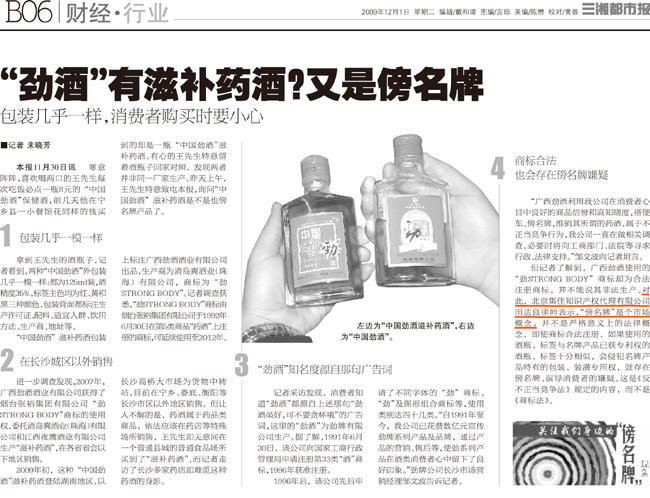 《三湘都市報》:“勁酒”有滋補藥酒?又是傍名牌