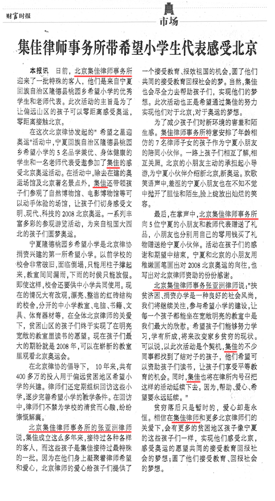 《財富時報》:集佳律師事務所帶領希望小學代表感受北京
