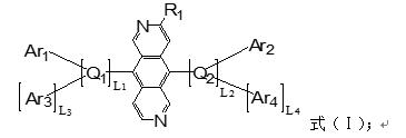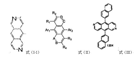 首先,確定審查意見所指出的共同結構是否正確,根據上面所說的第一種觀點,該申請的共同結構即為審查意見中所指出的結構;根據第二種與第三種觀點,將與母核吡啶并[3,4-g]異喹啉直接連接的變量R1、Q1與Q2引入共同結構的確定,但R1可為氫原子、氰基、碳原子數是1~30的烷基、取代或未取代的碳原子數6~50的芳基、取代或未取代的碳原子數5~50的雜環基、取代或未取代的碳原子數7~30的芳香族胺基、取代或未取代的碳原子數7~30的芳烷氧基或取代或未取代的碳原子數7~30的芳烷巰基;這幾者對母核所產生的電子效應、位阻效應等影響各異,也不是本領域公知的同一化合物類別;L1與L2可以為0或1,Q1和Q2獨立的選自氮、氧、硫、碳原子數6~30的芳基或碳原子數1~30的雜環基,其中,氮、氧與硫原子,其為化學領域常指的雜原子,三者對母核的影響類似,可視為本領域中公認的同一化合物類別,但其與芳基、雜環基差異較大,相互取代后,本領域技術人員并不能確定其能產生同樣的效果,因此不能視為同一化合物類別。由此可見,三種變量中各自所定義的可選擇的元素均不是本領域中公認的同一化合物類別,將變量引入后的結構也不是清楚和明確的,該申請的共同結構只能是審查員所指出的吡啶并[3,4-g]異喹啉(式(I-1))。