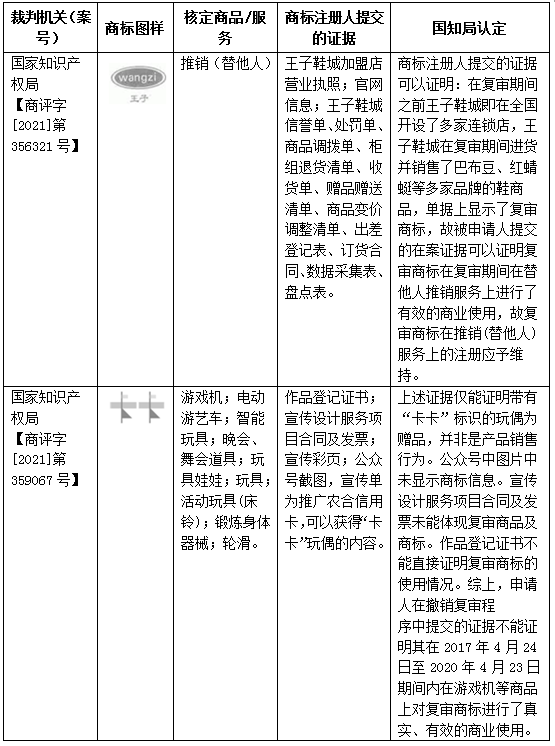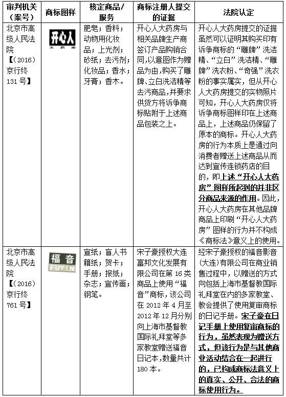 既然國(guó)知局刪除了上述規(guī)定,說明將商標(biāo)使用在“贈(zèng)品”上是否構(gòu)成商標(biāo)法意義上的商標(biāo)使用,就需要個(gè)案認(rèn)定。當(dāng)前國(guó)知局對(duì)“贈(zèng)品”的裁判標(biāo)準(zhǔn)可以通過以下案例窺見一斑:
