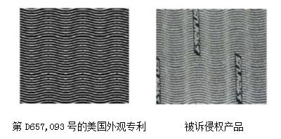 在初審判決中,地區(qū)法院認可了哥倫比亞提出賽魯斯產品侵權的理由,隨后陪審團判決賽魯斯賠償哥倫比亞超過300萬美元的賠償金。地區(qū)法院在簡易判決中駁回了賽魯斯的訴訟觀點,即第D657,093號的美國外觀專利與被訴產品圖案之間存在顯著差異。賽魯斯指出兩種圖案在波浪厚度、間距和方向均存在差異,以及其商標在整個圖案中的顯著存在。關于賽魯斯的觀點,地區(qū)法院進行了駁回,并提出在侵權分析中應完全忽略商標的存在。