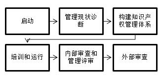 目前貫標(biāo)輔導(dǎo)咨詢,市場(chǎng)份額占比較大的有兩種模式:一種是基于咨詢機(jī)構(gòu)提供的一套符合國(guó)家標(biāo)準(zhǔn)的模板,企業(yè)根據(jù)知識(shí)產(chǎn)權(quán)的自身運(yùn)作形成記錄文件后爭(zhēng)取第三方認(rèn)可;另一種,是在咨詢機(jī)構(gòu)的全程輔導(dǎo)下,完成啟動(dòng)、管理現(xiàn)狀診斷、構(gòu)建知識(shí)產(chǎn)權(quán)管理體系、培訓(xùn)和運(yùn)行、內(nèi)部審查和管理評(píng)審、外部審查6個(gè)模塊(見(jiàn)圖1),系統(tǒng)的構(gòu)建知識(shí)產(chǎn)權(quán)管理體系。