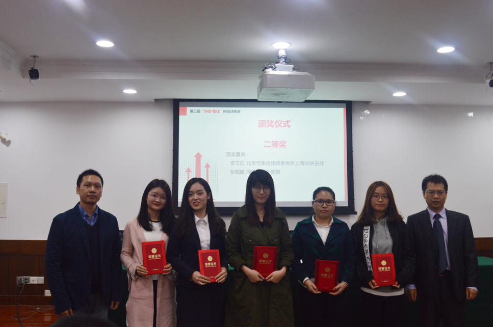 頒獎環節,由黃武雙教授、唐春副教授、李文紅律師、尹臘梅副教授、周春慧編輯、張韜略副教授、郭鵬鵬副教授為獲獎者頒獎。本次競賽共評出一等獎4組,二等獎6組,三等獎8組,提名獎27組,優秀獎30組。