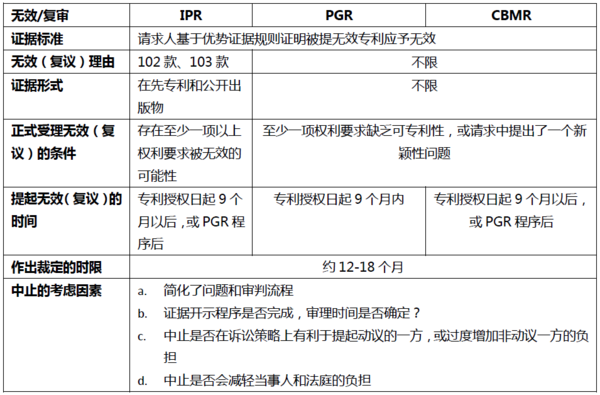 7、以下是IPR、PGR、CBMR三個程序對比表: