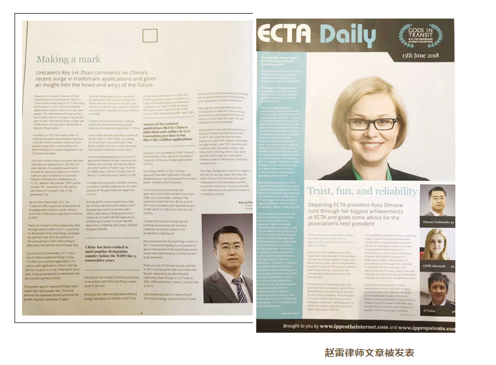 本次年會上,趙雷律師與世界各國知識產權界同仁探討當前熱點話題和商標發展趨勢,尋求廣泛的合作,同時也與參會代表分享了集佳近年來在國內商標領域及境外商標實踐中取得的成績和獲得的經驗,并與很多國家的代表建立了廣泛友好的業務聯系。此外,作為ECTA互聯網委員會委員,趙雷律師應邀參加了互聯網委員會會議,與世界各國專家同仁就世界范圍內互聯網領域的知識產權問題進行了深入探討。會議期間,趙雷律師撰寫的文章《Making a mark》在會刊《ECTA Daily》發表,受到客戶和業界同仁的好評。