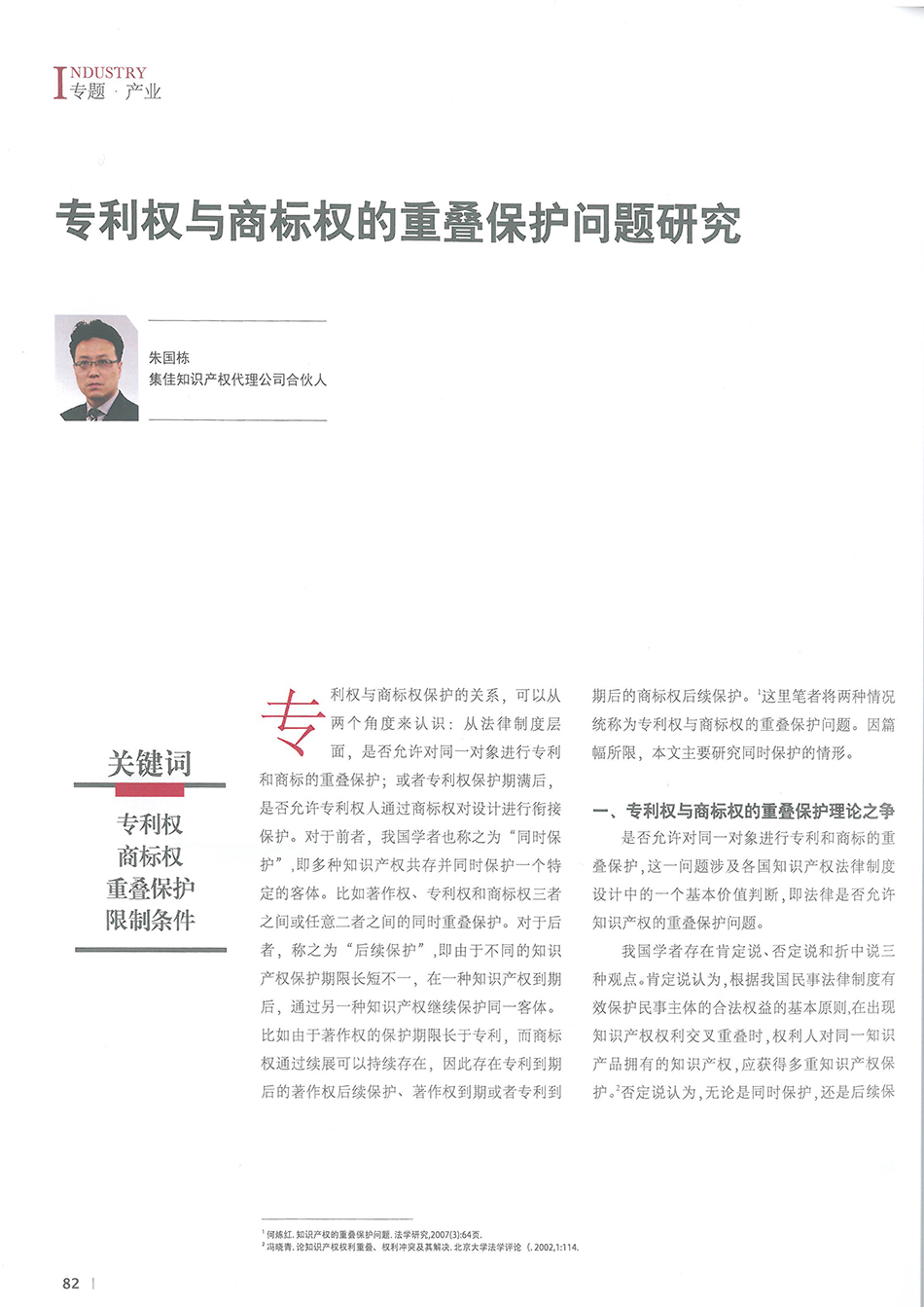 集佳文章《專利權(quán)與商標權(quán)的重疊保護問題研究》在《中國知識產(chǎn)權(quán)》發(fā)表