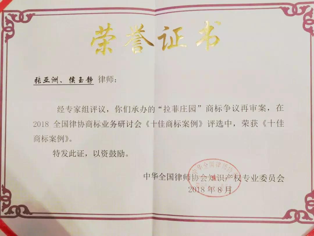 ▲ 集佳代理“拉菲莊園”案件入選“十佳商標案例”