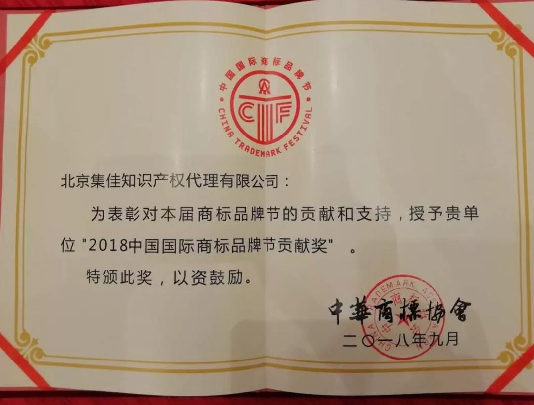 ▲ 集佳榮獲“2018中國國際商標品牌節(jié)貢獻獎”