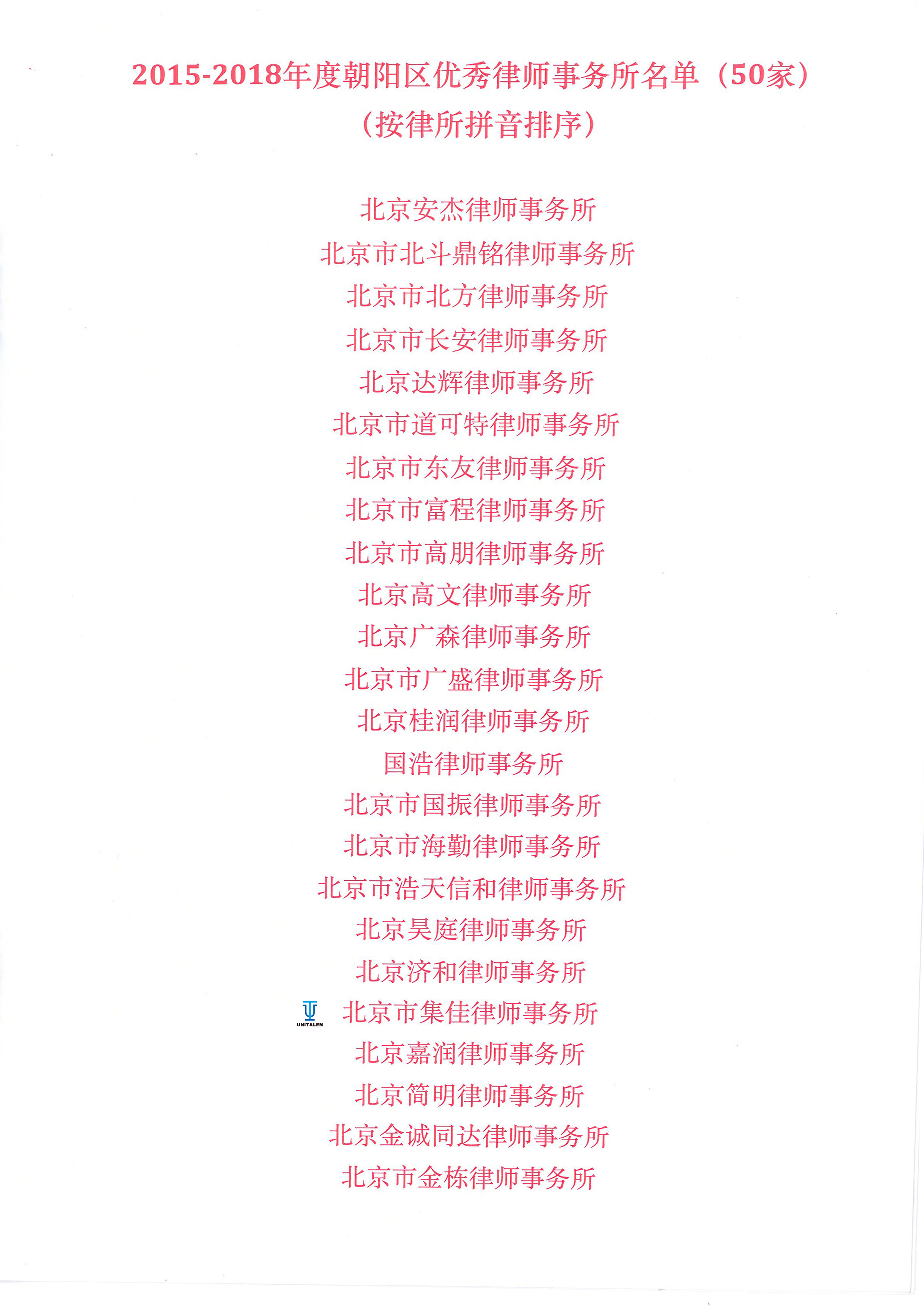 ▲集佳律師事務(wù)所被授予“2015-2018年度朝陽區(qū)優(yōu)秀律師事務(wù)所”榮譽(yù)稱號(hào)