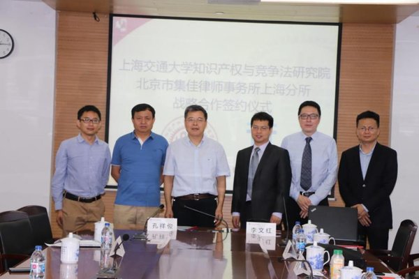 6月26日,北京市集佳律師事務所上海分所與上海交通大學知識產權與競爭法研究院戰略合作協議簽約儀式在上海交大徐匯校區凱原法學樓隆重舉行。上海交通大學知識產權與競爭法研究院院長孔祥俊教授、劉維副教授,北京市集佳律師事務所上海分所主任李文紅、資深顧問王俊河、合伙人李擘、合伙人張振軍出席簽約儀式。