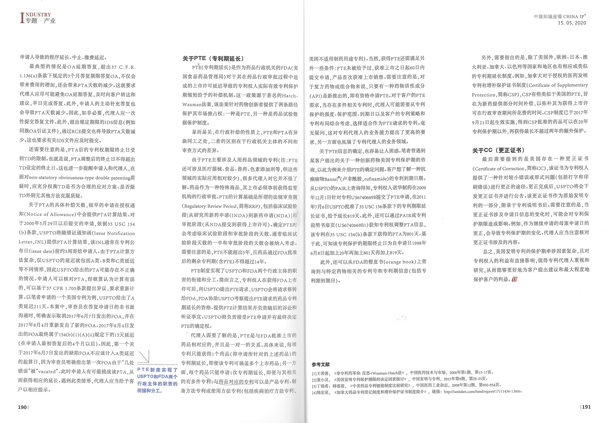 集佳文章《從美國專利保護(hù)期的角度看專利代理人的代理行為》在《中國知識產(chǎn)權(quán)》發(fā)表