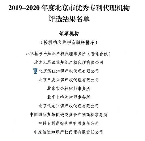 根據《北京市優秀專利代理機構和優秀專利代理人評選辦法》的規定,北京市專利代理師協會組織開展了2019-2020年度北京市優秀專利代理機構和優秀專利代理師評選工作,經各機構申報推薦、初審、專家評審、理事會審議以及名單公示等環節,最終評選出20家北京市優秀專利代理機構和49名北京市優秀專利代理師。