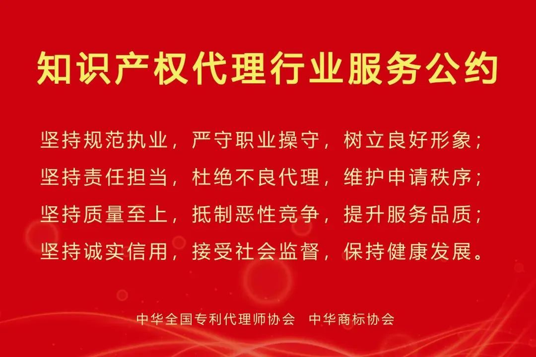 弘揚行業正氣、提升服務質量、加強行風建設是一項長期性、持久性的工作,集佳知識產權將在工作中始終用心踐行《公約》的各項要求,強化能力、提升質量,明確規矩、樹立導向,弘揚正氣、樹立新風,與業內各相關方形成合力,持續引導行業自律,全面推進行業高質量發展,為知識產權強國的建設作出自己的貢獻。