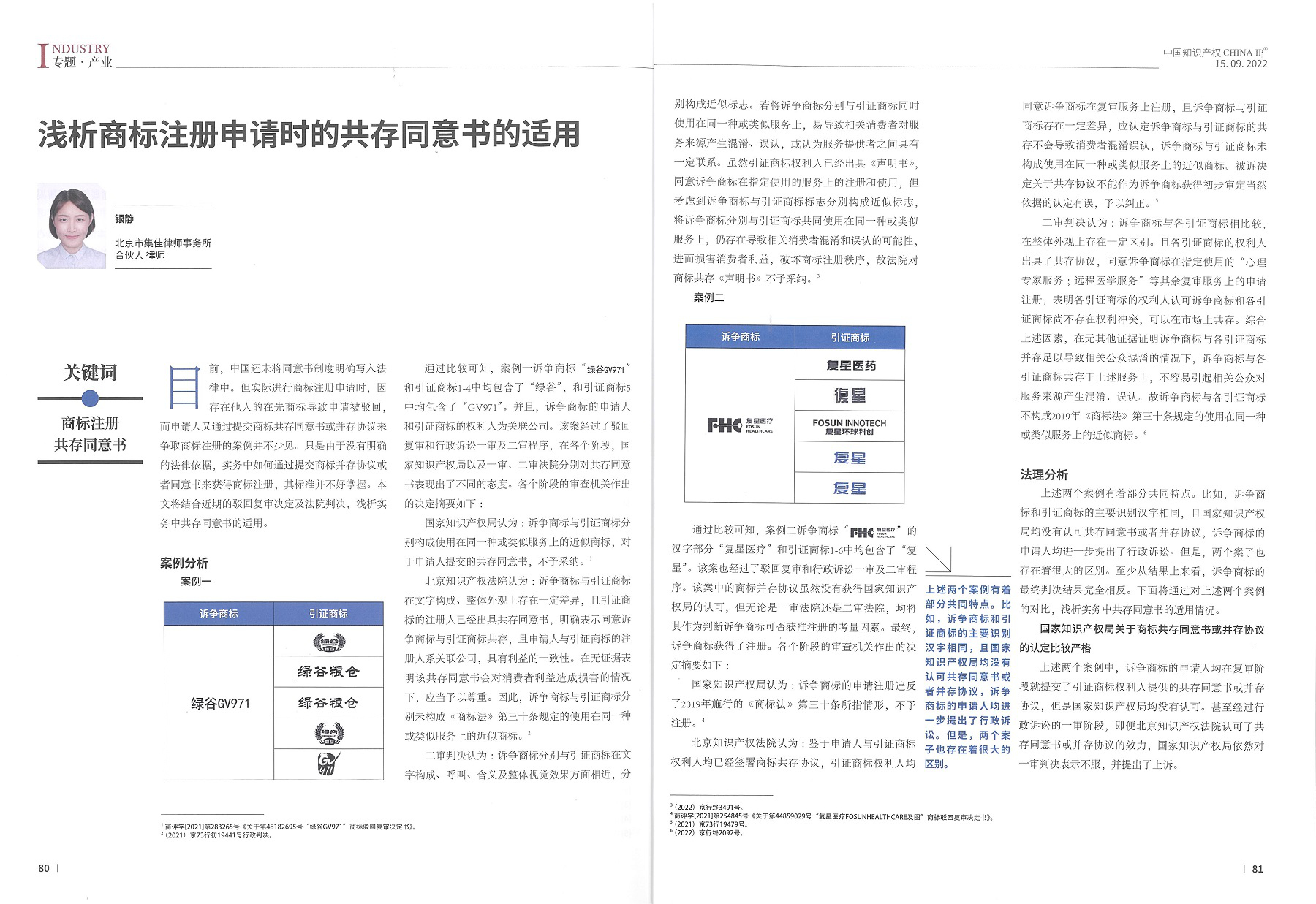 集佳文章《淺析商標(biāo)注冊申請時的共存同意書的適用》在《中國知識產(chǎn)權(quán)》發(fā)表