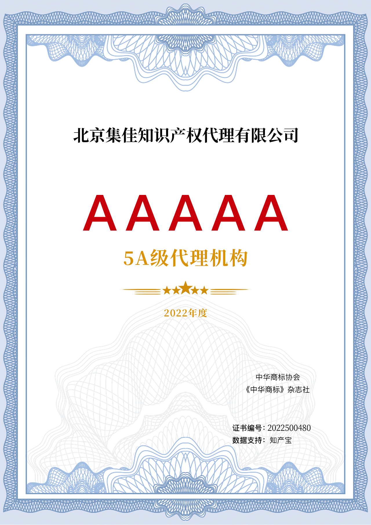 2023年11月22日,由中華商標協(xié)會指導、《中華商標》雜志社聯(lián)合知產(chǎn)寶共同發(fā)布的《中國商標代理600強》榜單正式揭曉,集佳憑借穩(wěn)健的綜合實力、優(yōu)質(zhì)的專業(yè)服務和良好的業(yè)界聲譽榮登“5A級代理機構(gòu)(TOP 100)”榜單!
