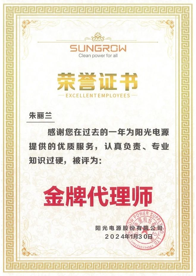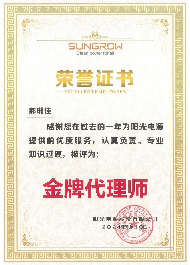 新春伊始,集佳再獲喜訊——陽光電源股份有限公司授予集佳“優(yōu)秀合作伙伴”榮譽(yù)稱號(hào)。