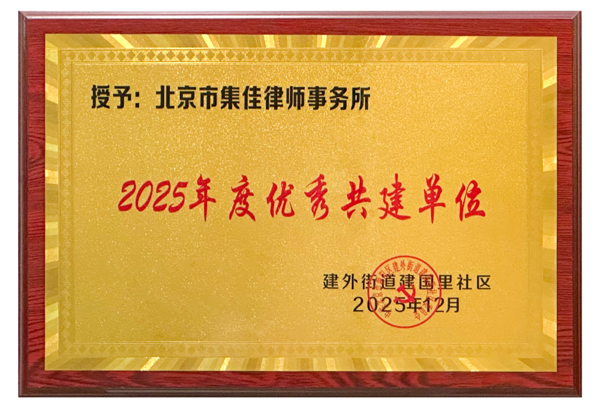 近日,北京集佳知識產(chǎn)權(quán)代理有限公司和北京市集佳律師事務所被建外街道建國里社區(qū)授予“2025年度優(yōu)秀共建單位”榮譽稱號,以表彰集佳過去一年在積極參與社區(qū)共建、支持社區(qū)公益事業(yè)、促進社區(qū)和諧等方面作出的重要貢獻。